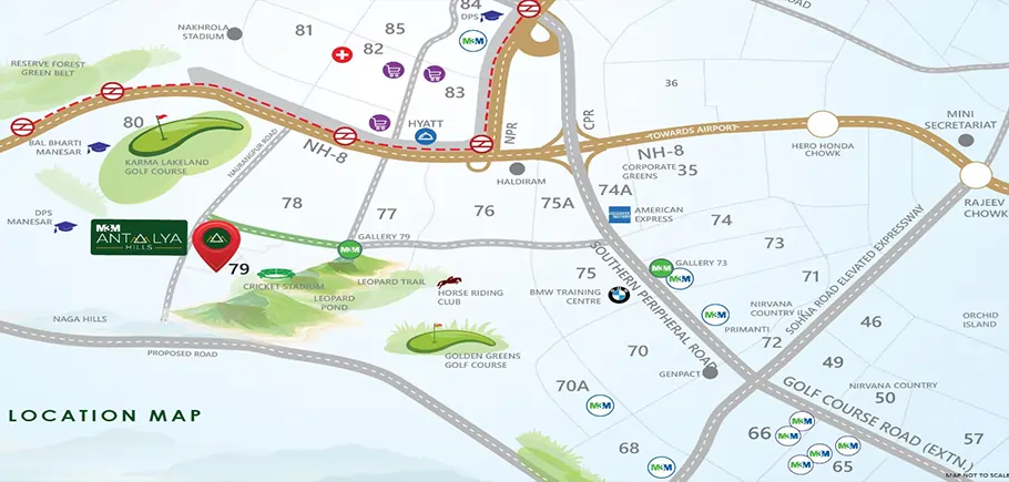 Situated at the foothills of Aravalli range in Sector 79, Gurugram, M3M Antalya Hills is a beautifully designed residential oasis where luxury, nature and connectivity come together. Spread over 24 acres, it offers low rise, independent style floors with 2.5 BHK and 3.5 BHK configurations ranging from 1,138 to 1,534 sq ft. What makes Antalya Hills unique is the perfect blend of modern comforts and nature inspired living. Each unit is equipped with high end finishes - Italian marble flooring, modular European style kitchens, VRV/VRF air conditioning and private terraces and basement in all units. With only 2 units per floor, the design ensures privacy and exclusivity
